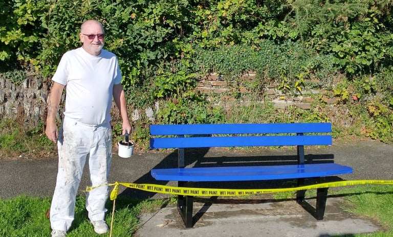 Have you spotted Mick? He's been out, freshening up the benches in bright colours.